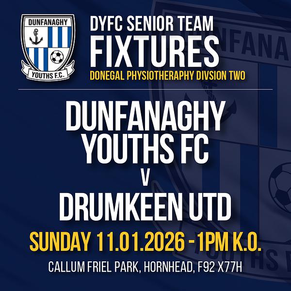 The senior team will be back in action for the first time this new year at Callum Friel Park this Sunday 11th Jan. when we they take on Drumkeen Utd. K.O. 1pm.